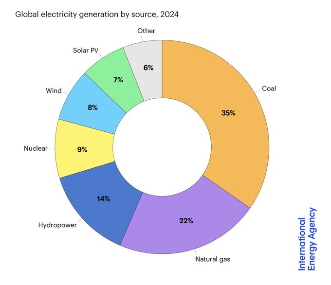 Σύμφωνα με το ακόλουθο γράφημα που ανέβασε στα social δημοσιογράφος του Bloomberg, κρατά τα σκήπτρα στην παγκόσμια παραγωγή ηλεκτρισμού, με ποσοστό 35%. Μεγάλο ρόλο σε αυτό παίζει ασφαλώς και η Κίνα, ωστόσο η σύγκριση μεριδίων είναι γενικότερα αποκαλυπτική.