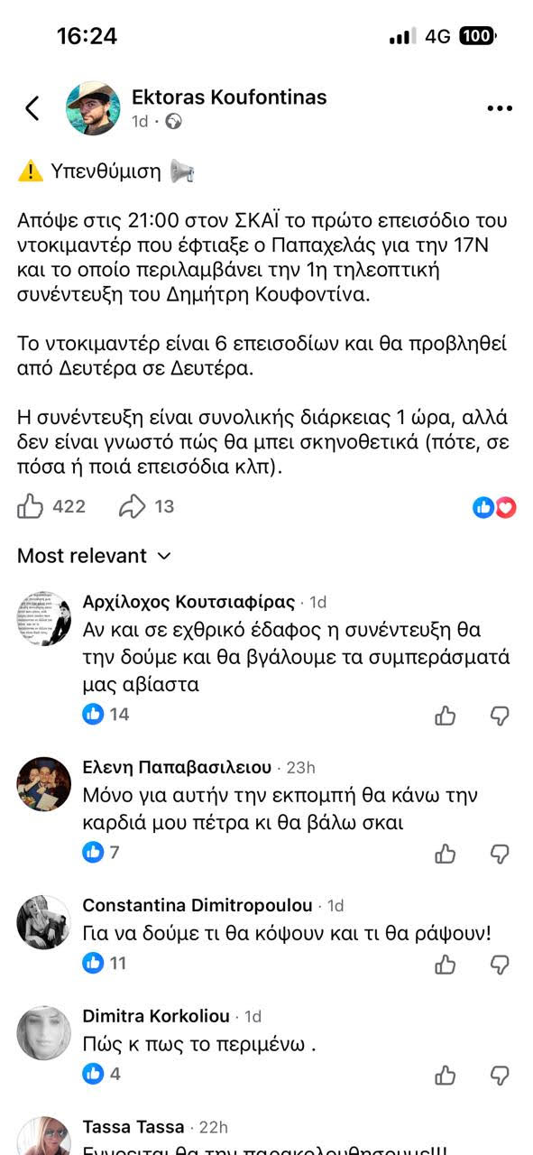 Προφανώς αυτή η σειρά αναρτήσεων αποσκοπεί, μεταξύ άλλων, να εξοργίσει περισσότερο τους συγγενείς των θυμάτων, που από την αρχή στάθηκαν αντίθετοι στη συμμετοχή Κουφοντίνα στο ντοκιμαντέρ.