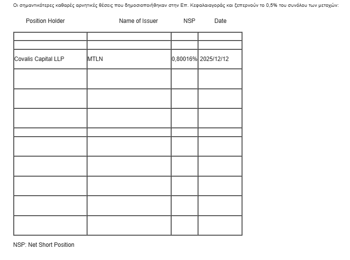 Οι περισσότερο δανεισμένοι τίτλοι, μόνο από OTC (*) είναι: ΑΛΦΑ 321.060.202 τεμ., (από 324.678.722 τεμ. στην αμέσως προηγούμενη συνεδρίαση), ΔΕΗ 9.837.209 τεμ. (9.837.209), ΟΠΑΠ 9.590.332 τεμ. (2.031.131), ΕΤΕ 22.654.562 τεμ. (22.711.126), ΟΤΕ 2.039.121 τεμ. (2.128.809), ΠΕΙΡ 10.055.009 τεμ. (10.055.009), ΑΔΜΗΕ 6.833.955 τεμ. (6.833.955), MTLN 1.653.658 τεμ. (1.634.290), ΙΝΛΟΤ 39.212.054 τεμ. (38.253.138), ΓΕΚΤΕΡΝΑ 1.652.528 τεμ. (1.670.732), OPTIMA 4.785.738 τεμ. (4.805.061), ΕΥΡΩΒ 110.474.742 τεμ. (116.575.937), AKTR 1.025.011 τεμ. (979.306).