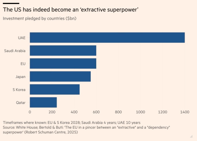 Δυστυχώς, ο Τραμπ έχει καταστρέψει αυτή μεγάλη ευκαιρία. Στη θέση της βλέπουμε μια χειρά αναξιόπιστων και ληστρικών συμφωνιών. Εκτός της επιβολής τεράστιων δασμών σε χώρες που νόμιζαν πως ήταν φίλιες προς την Αμερική, ο Τραμπ έχει απαιτήσει να επενδυθούν χρήματα κατά την κρίση του, προς μεγάλη ενόχληση των ξένων εταίρων. Αυτό είναι ξεκάθαρος γκαντκστερισμός.
