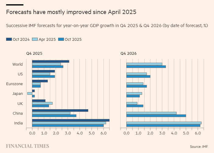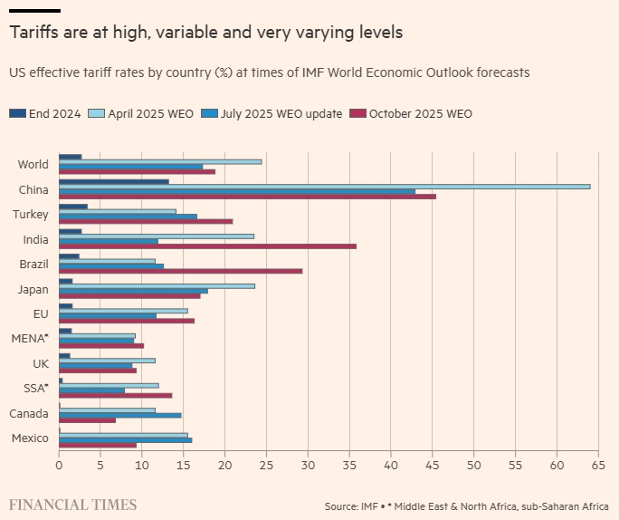 Αυτό είναι το θέμα του δεύτερου κεφαλαίου του WEO. Το πρόβλημα είναι πως οι εξωτερικές συνθήκες είναι απίθανο να γίνουν ευκολότερες για πολλούς από αυτούς. Η Κίνα αντιμετωπίζει την αμερικανική εχθρότητα και τις εσωτερικές αδυναμίες. Η Βραζιλία και η Ινδία έχουν πληγεί από τους εγκληματικά υψηλούς αμερικανικούς δασμούς του 50%.