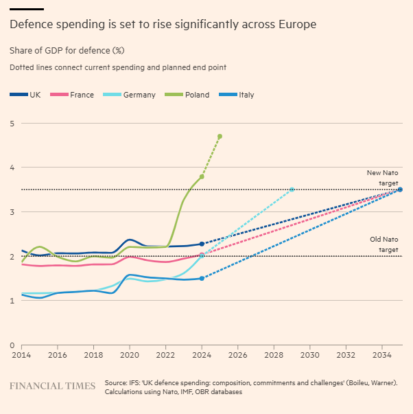 Έχοντας υποεπενδύσει για την ασφάλειά τους επί δεκαετίες, ήλπιζαν πως μια δέσμευση από όλα τα μέλη της συμμαχίας πέρυσι για δαπάνες 5% του ΑΕΠ μέχρι το 2035 για την άμυνα και την ασφάλεια θα τους αγόραζε κάποιον χρόνο για να επανεξοπλιστούν και για να αντικαταστήσουν ορισμένα από τα κρίσιμα στρατιωτικά assets στα οποία βασίζονταν στην Αμερική για να τους τα παρέχει.