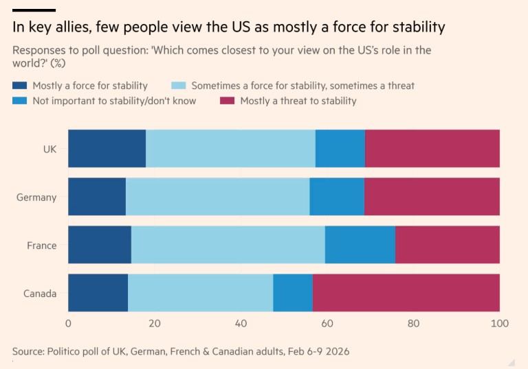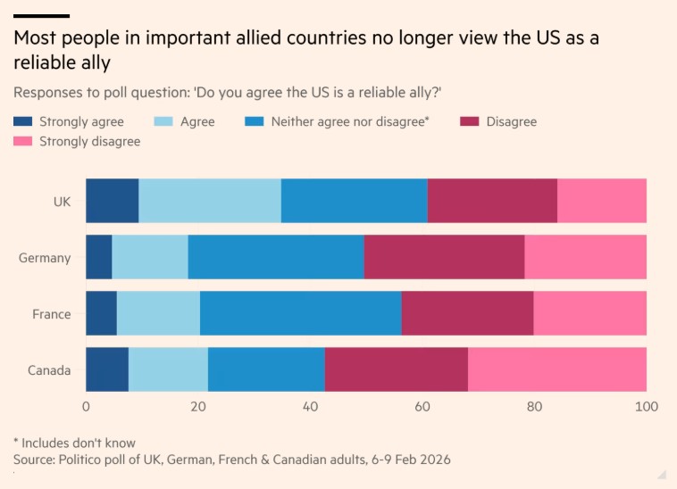 Η συμπεριφορά της Αμερικής απέναντί τους υπήρξε τόσο αλλοπρόσαλλη και προσβλητική υπό τον Τραμπ, που η εμπιστοσύνη έχει εξανεμιστεί σε μεγάλο βαθμό. Ακόμα χειρότερα, οι ΗΠΑ έχουν φανεί ακόμα και εχθρικές προς τις φιλελεύθερες δημοκρατικές αξίες που οι Ευρωπαίοι και άλλοι πίστευαν για καιρό πως μοιράζονται με την ηγεμονική δύναμη.
