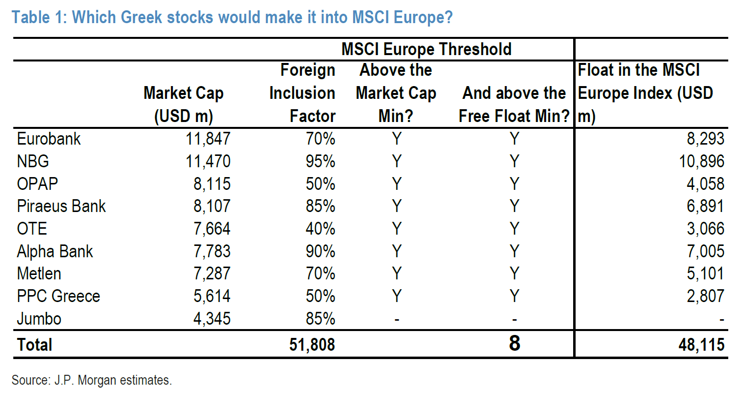 «Το επενδυτικό ενδιαφέρον για την ελληνική αγορά έπεσε κατακόρυφα. Αναμένουμε ακριβώς το ίδιο αποτέλεσμα και τώρα. Κατά τη διάρκεια του τελευταίου έτους, έχουμε λάβει λιγότερες από 5 ερωτήσεις συνολικά για Νορβηγία, Αυστρία, Ιρλανδία και Πορτογαλία, αγορές με ανάλογο ή μεγαλύτερο βάρος από την Ελλάδα στο MSCI Europe. Πιστεύετε ότι η Ελλάδα θα προσελκύσει περισσότερο ενδιαφέρον από την Πορτογαλία ή την Ιρλανδία;», επισημαίνει ο αμερικανικός οίκος.