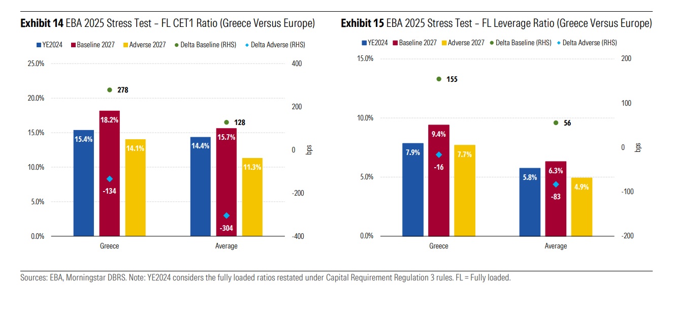 Τα αποτελέσματα του stress test της Ευρωπαϊκής Αρχής Τραπεζών (EBA) για το 2025 έδειξαν καλύτερη επίδοση των ελληνικών τραπεζών συγκριτικά με τον ευρωπαϊκό μέσο όρο, επισημαίνει ο οίκος.