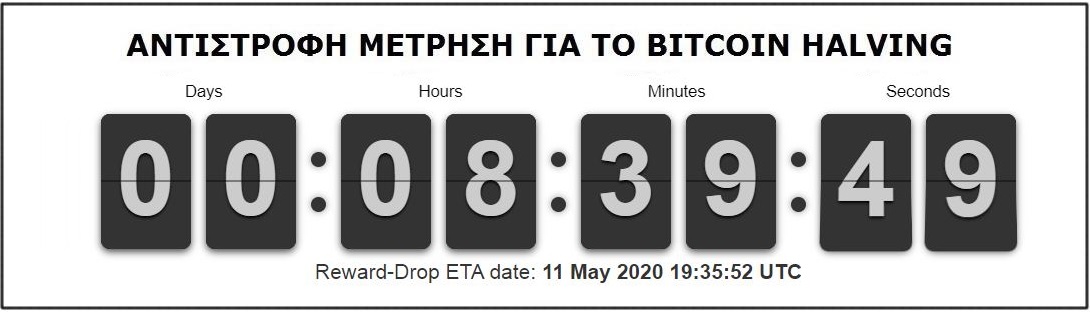 Μόλις 8 ώρες έμειναν μέχρι το halving. Αυτό το διάστημα προσφέρεται για απότομες μεταβολές και για αυτό είναι ιδανικό για traders. Οι απότομες διακυμάνσεις τούς προσελκύουν. Συνεπώς η απότομη διόρθωση μέσα στο Σαββατοκύριακο να οφείλεται σε βραχυπρόθεσμες κερδοσκοπικές κινήσεις. Ας μην ξεχνάμε πως η αγορά των crypto δεν διαθέτει τη ρευστότητα και το βάθος που έχουν άλλα νομίσματα, όπως το δολάριο ή το ευρώ.