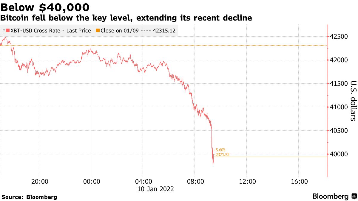 Το Bitcoin βούλιαξε κάτω από τα 40.000 δολάρια για πρώτη φορά από τον Σεπτέμβριο, καταγράφοντας το χειρότερο ξεκίνημα μιας νέας χρονιάς.