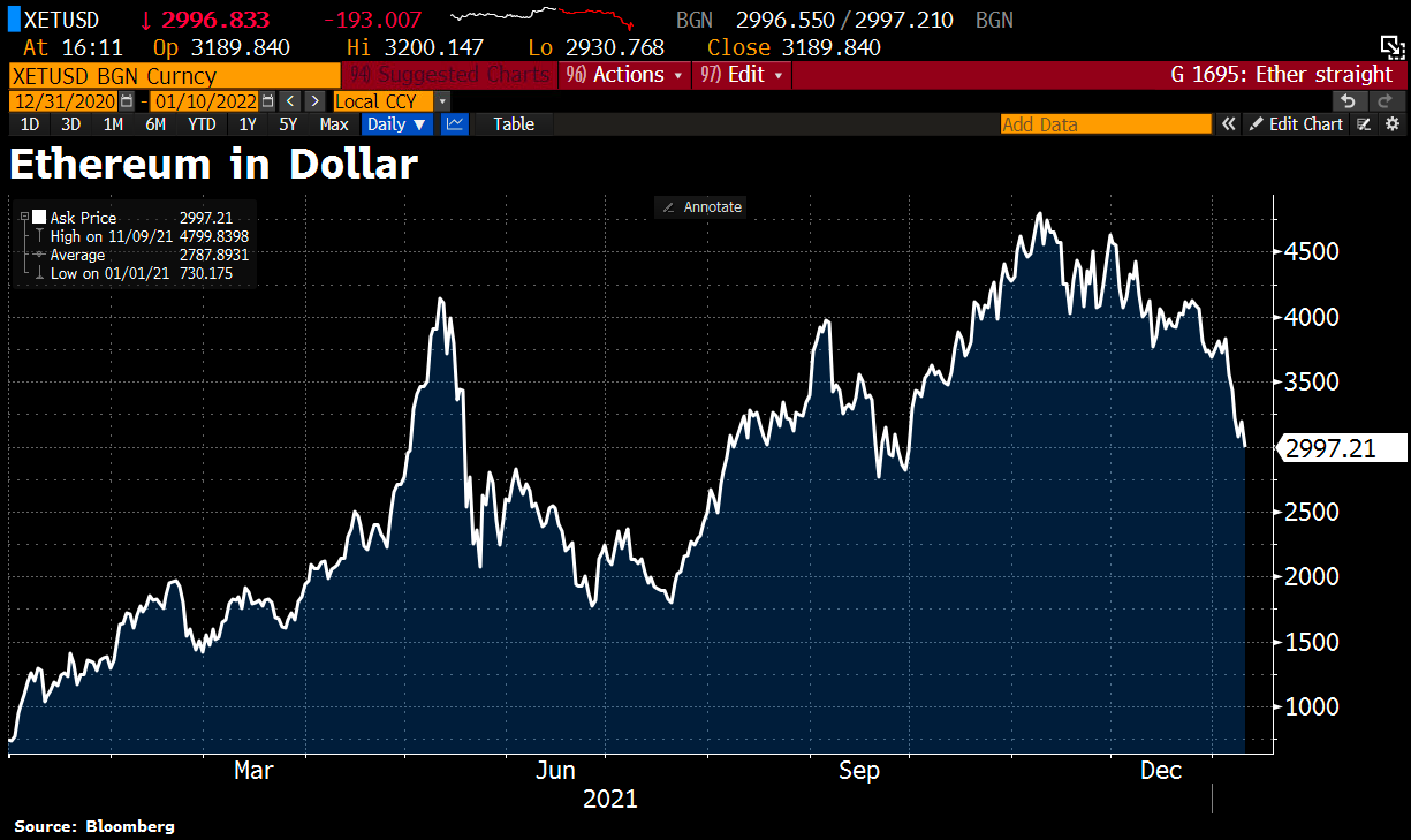 Η πτώση από την αρχή του 2022 είναι η μεγαλύτερη που έχει σημειωθεί για αρχή έτους τουλάχιστον από το 2012. Το Ether σημείωσε επίσης πτώση, ενώ ο δείκτης Bloomberg Galaxy Crypto υποχώρησε για τέταρτη διαδοχική μέρα.