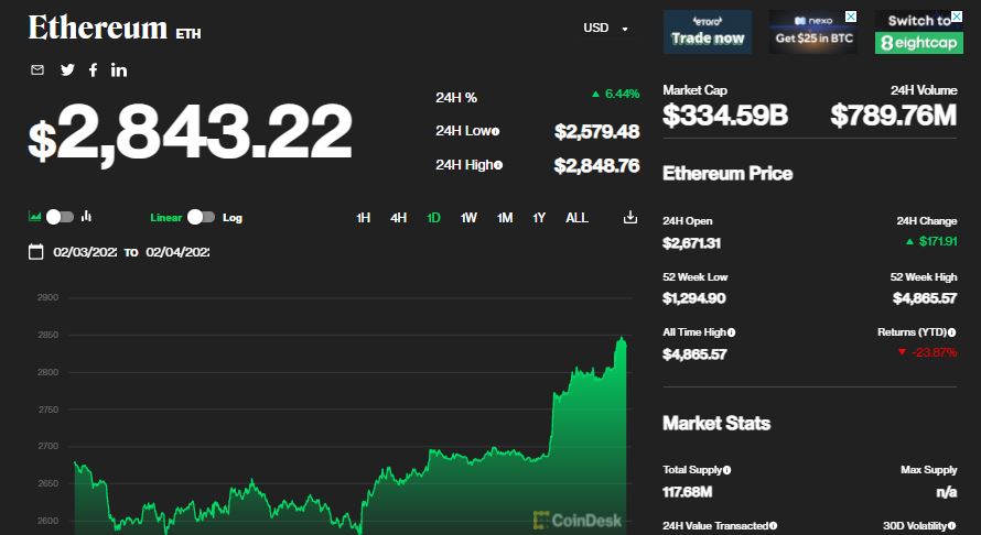 Ανοδικά κινούνται τα κρυπτονομίσματα την Παρασκευή, με το Bitcoin να ενισχύεται 2,2%, στις 37.928 δολάρια και το Ethereum να καταγράφει μεγαλύτερα κέρδη (πάνω από 6%), φτάνοντας στις $2.835,33, σύμφωνα με τo Coindesk.