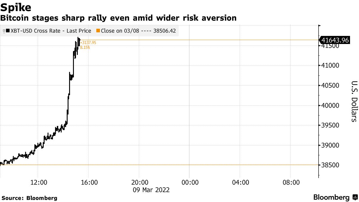 Οπως μεταδίδει το Bloomberg, το Bitcoin έχει παγιδευτεί σε ένα εύρος περίπου 35.000 έως 45.000 δολαρίων για μεγάλο μέρος του έτους. Η πιο πρόσφατη ανοδική κίνηση ήρθε παρά τον πόλεμο στην Ουκρανία και την αναταραχή στις αγορές εμπορευμάτων.
