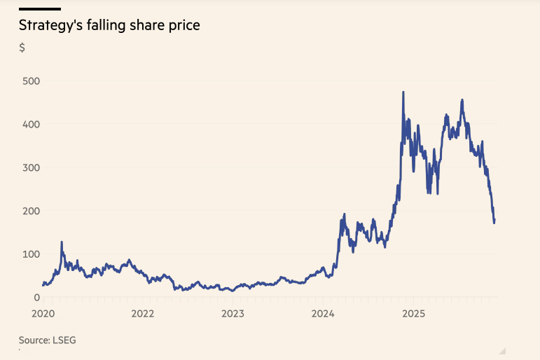 Οπως μεταδίδουν οι Financial Times, οι μετοχές της Strategy, της μεγαλύτερης εταιρείας κατόχου bitcoin στον κόσμο, με επικεφαλής τον Michael Saylor, έχουν πέσει κατά 50% τους τελευταίους τρεις μήνες, συμπαρασύροντας δεκάδες εταιρείες που την μιμούνται.