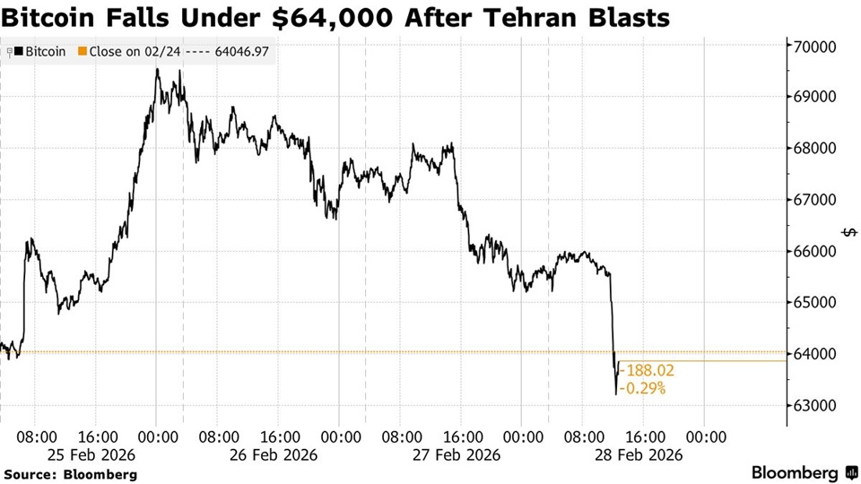 Το Bitcoin και άλλα ψηφιακά περιουσιακά στοιχεία κατέγραψαν απότομη πτώση, μετά τα πλήγματα που εξαπέλυσαν οι ΗΠΑ και το Ισραήλ κατά του Ιράν, σήμερα Σάββατο.