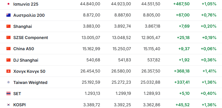 Aνοδικά κινούνται οι αγορές της Ασίας-Ειρηνικού, με τον Nikkei να κερδίζει 1% και τον Hang Seng 1,4%, ακολουθώντας και τα χθεσινά κέρδη της Wall Street.