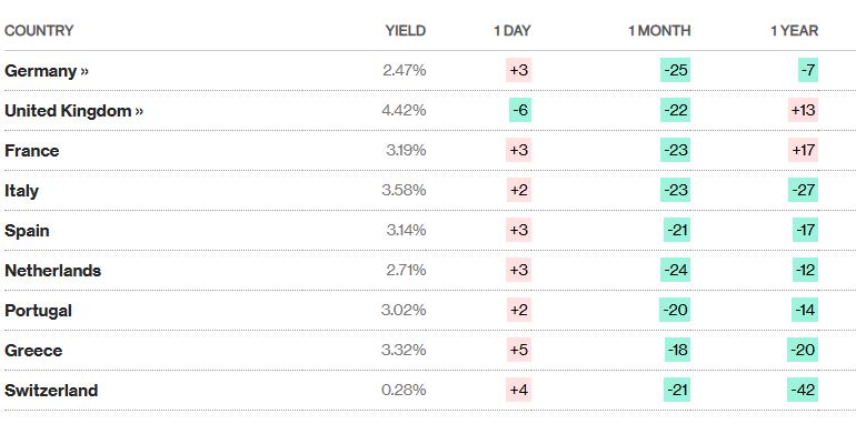 Οι αποδόσεις 10ετών ευρωπαϊκών κρατικών ομολόγων: