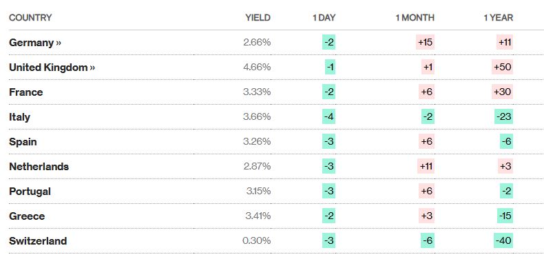 Οι αποδόσεις 10ετών ευρωπαϊκών κρατικών ομολόγων: