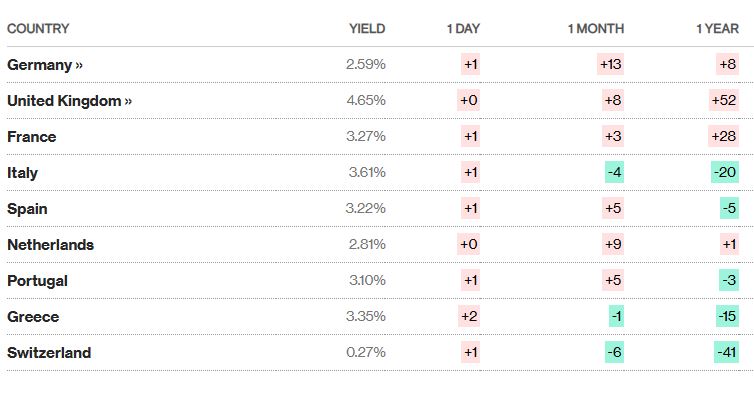 Η απόδοση του 10ετούς γερμανικού ομολόγου αναφοράς αυξήθηκε κατά 1 μονάδα βάσης (bp) στο 2,59%, ενώ την προηγούμενη εβδομάδα είχε αγγίξει το 2,70% - το υψηλότερο επίπεδο από τις 10 Απριλίου.