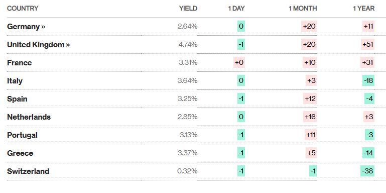 Οι αποδόσεις 10ετών ευρωπαϊκών κρατικών ομολόγων: