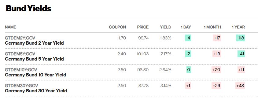 Σε υψηλό δύο μηνών οι αποδόσεις των γερμανικών ομολόγων μακροχρόνιας διάρκειας, καθώς οι ανησυχίες των επενδυτών για την επιδείνωση των δημοσιονομικών προοπτικών στις Ηνωμένες Πολιτείες ενισχύθηκαν, μετά τη χλιαρή ζήτηση στη δημοπρασία αμερικανικών ομολόγων μία μέρα πριν.