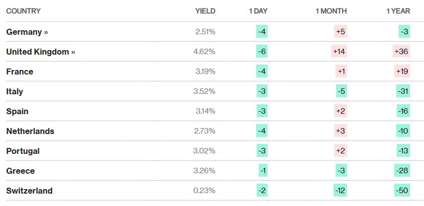 Οι αποδόσεις 10ετών ευρωπαϊκών κρατικών ομολόγων: