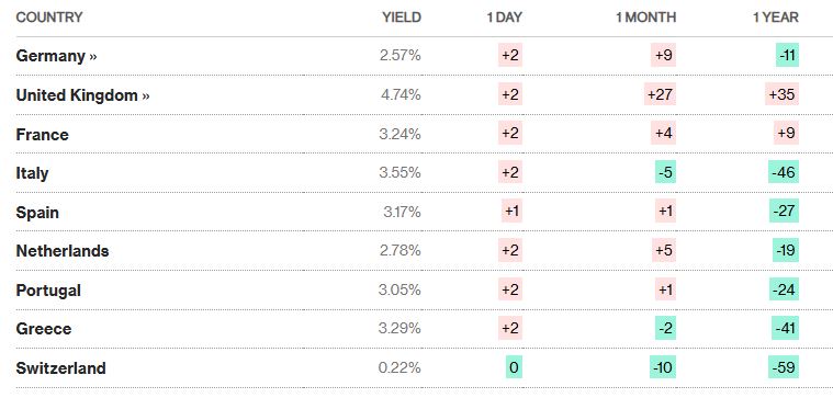 Οι αποδόσεις των 10ετών κρατικών ευρωομολόγων: