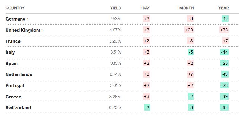 Οι αποδόσεις 10ετών ευρωπαϊκών κρατικών ομολόγων: