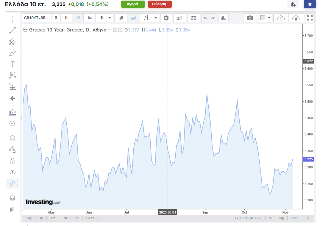Η απόδοση του 10ετούς γαλλικού ομολόγου αυξήθηκε κατά 2 μονάδες βάσης στο 3,47% και του ιταλικού σχεδόν κατά 2 μονάδες βάσης στο 3,43%, φτάνοντας στα υψηλότερα επίπεδα από τα μέσα Οκτωβρίου. Η απόδοση του ελληνικού 10ετούς κινείται ανοδικά κατά σχεδόν 2 μονάδες βάσης, στο 3,32%.