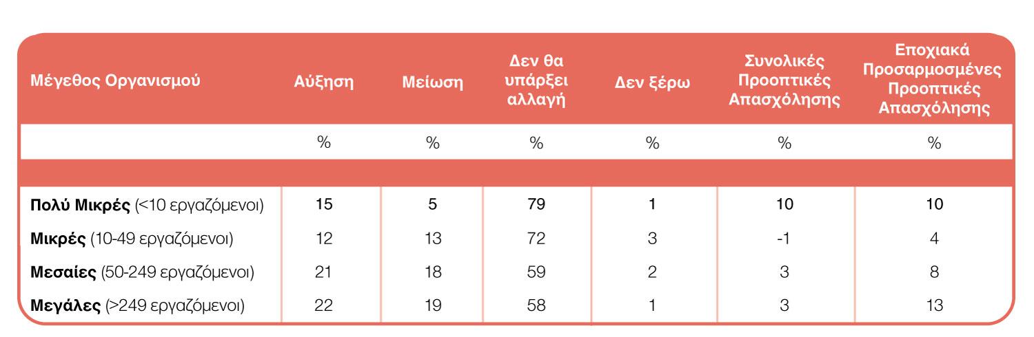 Προοπτικές Απασχόλησης σε σχέση με το Μέγεθος του Οργανισμού
