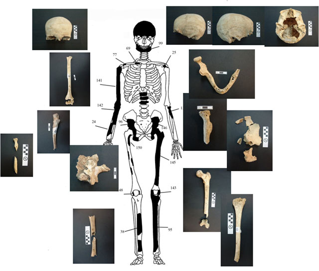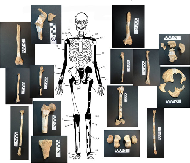 Από τα 550 οστά, που καταμετρήθηκαν, τα 157, τα οποία προέκυψαν κατόπιν προσεκτικής ανάταξης από διαφορετικά θραύσματα διάσπαρτων οστών, καταγράφηκαν συστηματικά σε βάση δεδομένων και έγινε προσπάθεια απόδοσης τους σε επιμέρους άτομα.