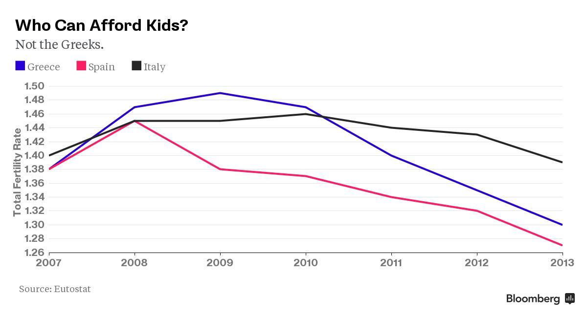 Παράλληλα, υπάρχει πρόβλημα υπογονιμότητας στην Ελλάδα, πρόβλημα το οποίο επιτείνεται από τα οικονομικά προβλήματα της χώρας. αυτό σημαίνει πως ο πληθυσμός συνεχίζει να γερνάει και έτσι ένας όλο και μικρότερος αριθμός εργαζομένων επωμίζεται το υψηλότερο κόστος των συντάξεων, καθώς ο αριθμός των συνταξιούχων ολοένα και αυξάνεται.
