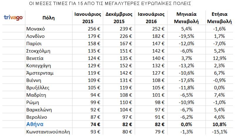 *Οι μέσες τιμές προκύπτουν από τη βάση δεδομένων της trivago έπειτα από τη σύγκριση τιμών από περισσότερα από 200 διαφορετικά online booking sites.