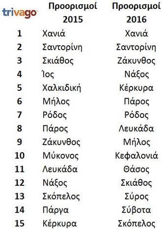 Έκτη κατατάσσεται η Πάρος, δύο θέσεις υψηλότερα από πέρυσι, με τη Ρόδο να ακολουθεί στην έβδομη θέση, παραμένοντας σταθερή συγκριτικά με το καλοκαίρι του 2015.