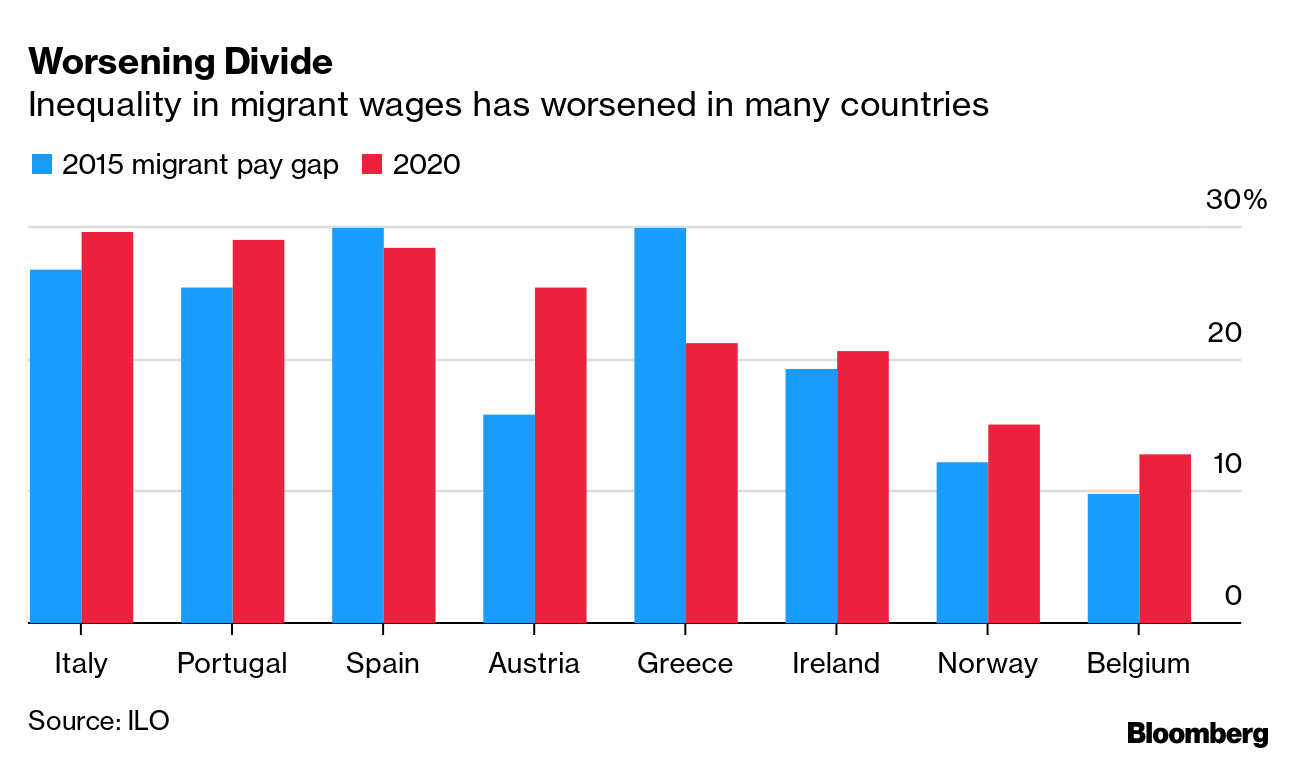 Οι μετανάστες εργαζόμενοι στις πλουσιότερες οικονομίες του κόσμου έχουν μισθούς 12,6% χαμηλότερους, κατά μέσο όρο, σε σχέση με τους ντόπιους εργαζόμενους κάθε χώρας και το χάσμα διευρύνεται, σύμφωνα με τη Διεθνή Οργάνωση Εργασίας (ILO).
