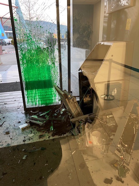 Κατά την έκρηξη ενεργοποιήθηκε αυτόματα ο μηχανισμός χρωματισμού όλων των χαρτονομισμάτων που περιελάμβανε το ΑΤΜ, όπως όλα τα ΑΤΜs που διαθέτει το δίκτυο της Eθνικής Τράπεζας. Το αποτέλεσμα ήταν να χρωματιστούν και κατά συνέπεια να αχρηστευτούν τα χρήματα κι έτσι να τραπούν σε φυγή οι τέσσερις ληστές, με άδεια χέρια!