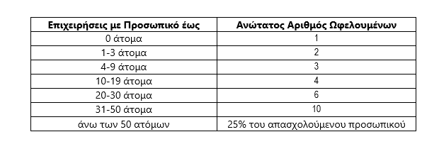 Οι επιχειρήσεις εντάσσονται στο πρόγραμμα, ανάλογα με το προσωπικό τους, ως εξής: