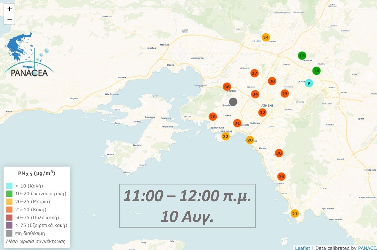 Ενημέρωση σε ωριαία βάση παρέχεται από την πλατφόρμα της Εθνικής Υποδομής PANACEA (https://air-quality.gr/)