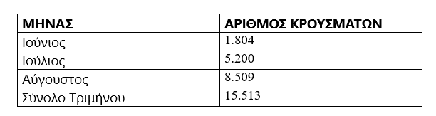 ΠΙΝΑΚΑΣ Ι: Αριθμός κρουσμάτων στην Π.Ε. Θεσσαλονίκης στο τρίμηνο του καλοκαιριού