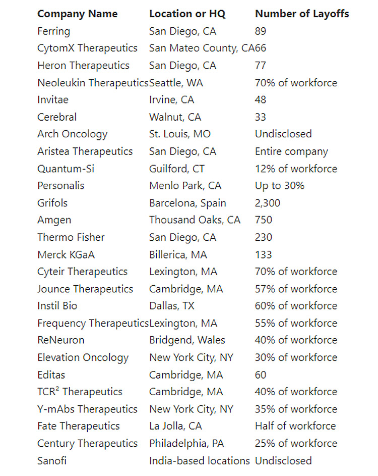 Μια ύφεση το 2023 είναι πολύ πιθανή. Περίπου τα δύο τρίτα των οικονομολόγων που συμμετείχαν σε έρευνα στο Παγκόσμιο Οικονομικό Φόρουμ στο Νταβός δήλωσαν ότι αναμένουν οικονομική ύφεση φέτος. Δεδομένης της δύσκολης οικονομικής κατάστασης, ένας αυξανόμενος αριθμός φαρμακευτικών εταιρειών μειώνει προσωπικό. Ακολουθεί μια λίστα με περικοπές θέσεων που ανακοινώθηκαν το πρώτο τρίμηνο του 2023 (https://www. pharmaceuticalprocessingworld. com/pharma-layoffs-in-2023- companies-making-cuts/).