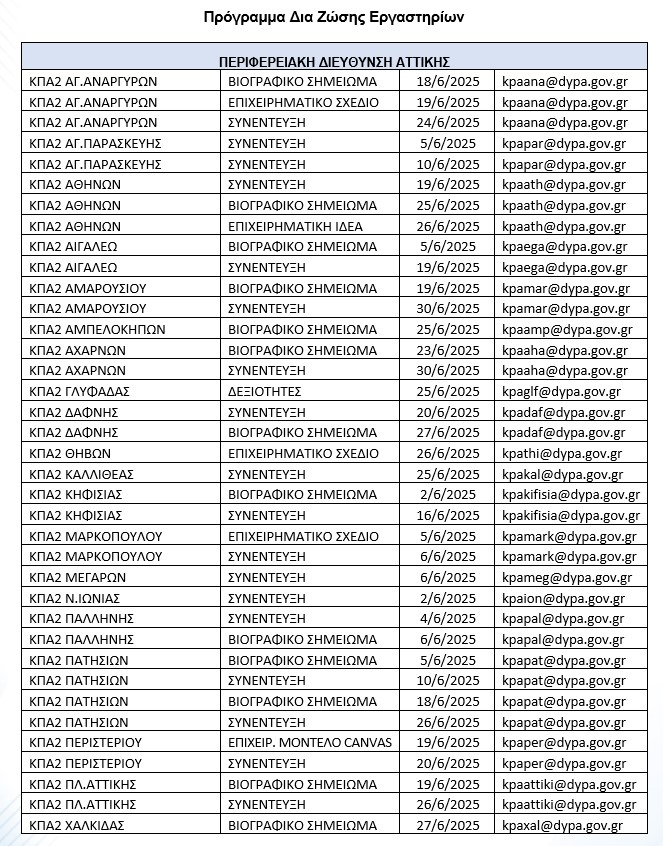 Οι ενδιαφερόμενοι μπορούν να δηλώσουν συμμετοχή από αύριο 29.05.2025 στη διεύθυνση https://www.dypa.gov.gr/workshops