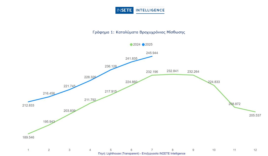 Ακολουθώντας την τάση που ξεκίνησε το 2023 και ενισχύθηκε το 2024, η εξέλιξη του αριθμού των καταλυμάτων βραχυχρόνιας μίσθωσης τους πρώτους επτά μήνες του 2025 παρουσιάζει συνεχιζόμενη άνοδο σε σύγκριση με την αντίστοιχη περίοδο του 2024.