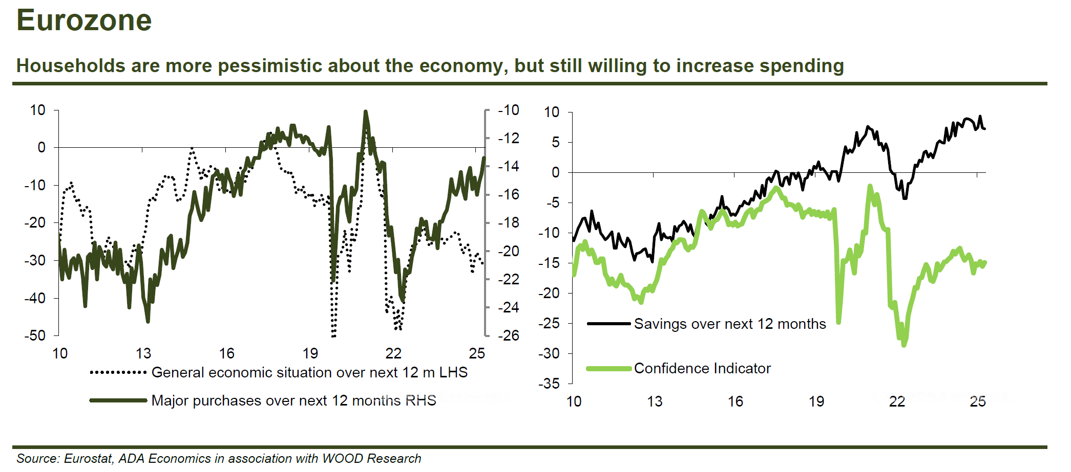 Οι δείκτες οικονομικού κλίματος της Ευρωζώνης για τον Σεπτέμβριο έδειξαν ανάκαμψη της βιομηχανίας στην Κεντρική Ευρώπη, με χώρες όπως η Τσεχία και η Πολωνία να καταγράφουν βελτίωση, ενώ η Γερμανία παρέμεινε στάσιμη και η Γαλλία και η Ιταλία κινήθηκαν ήπια καλύτερα. Ωστόσο, οι καταναλωτές εξακολουθούν να ανησυχούν για την οικονομία, ακόμη κι αν δηλώνουν έτοιμοι να πραγματοποιήσουν μεγάλες αγορές τους επόμενους μήνες.