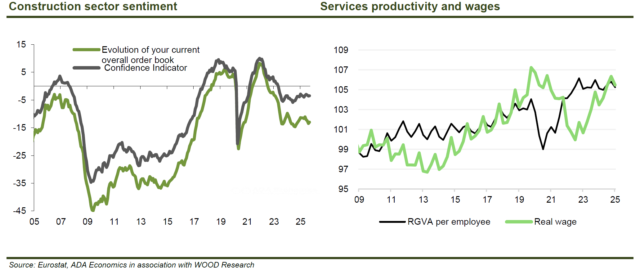 Σύμφωνα με την WOOD, η εικόνα στις επιχειρήσεις είναι μικτή: το λιανεμπόριο παρουσίασε σαφή υποχώρηση, η βιομηχανία δείχνει αύξηση προσδοκιών παραγωγής και ισχυρή τιμολογιακή ισχύ, ενώ στις υπηρεσίες οι παραγγελίες βελτιώνονται αλλά δεν επαρκούν για να μεταφραστούν σε άμεση ώθηση της οικονομίας. Το γενικό μήνυμα είναι ότι ο πληθωρισμός παραμένει σταθερός γύρω στο 2%, χωρίς ενδείξεις ισχυρής αποπληθωριστικής πίεσης, αλλά ούτε και εκτόξευσης των τιμών.