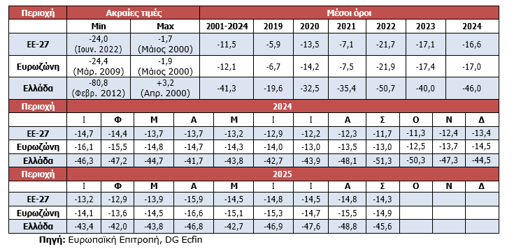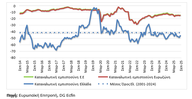 Δείκτης Εμπιστοσύνης Καταναλωτών (εποχικά εξομαλυμένα στοιχεία)