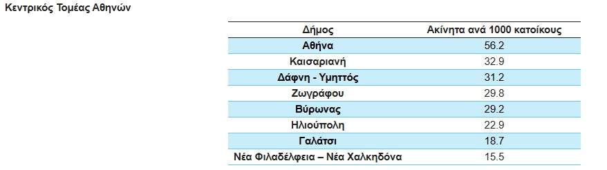 Ο Κεντρικός Τομέας Αθηνών παρουσιάζει μεσαίες έως υψηλές τιμές του ΔΚΠΚ, αντικατοπτρίζοντας την έντονη εμπορική δραστηριότητα και την αυξημένη κινητικότητα της αθηναϊκής αγοράς.
