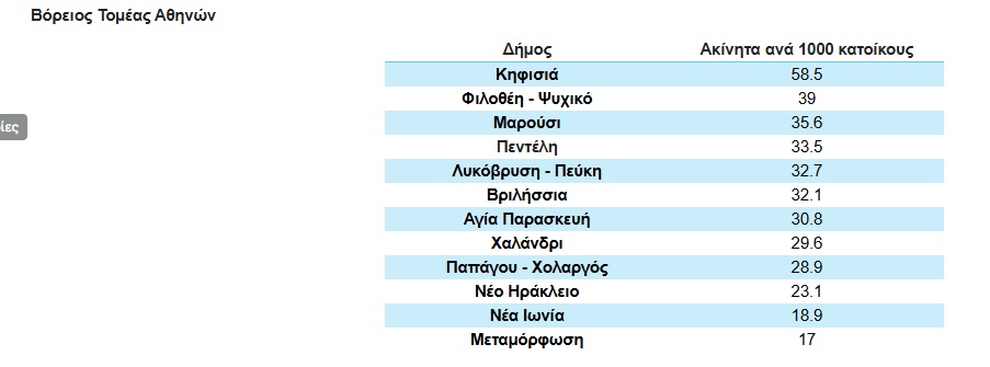 Ο Βόρειος Τομέας Αθηνών παρουσιάζει μεσαίες έως υψηλές τιμές του ΔΚΠΚ, αποτυπώνοντας μια αγορά με αυξημένη διαθεσιμότητα και σχετική ανανέωση του οικιστικού αποθέματος.