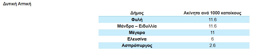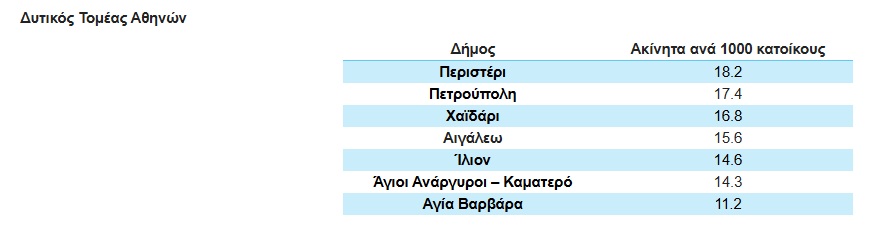Η Δυτική Αττική χαρακτηρίζεται από χαμηλές τιμές του ΔΚΠΚ, με περιορισμένη διαθεσιμότητα ακινήτων προς πώληση.