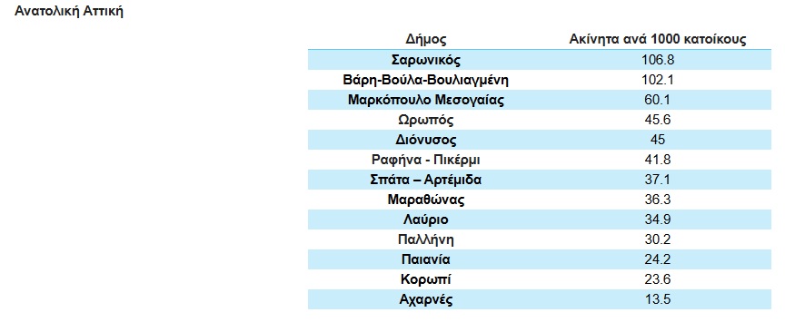 Η Ανατολική Αττική παρουσιάζει υψηλές τιμές του ΔΚΠΚ, ιδιαίτερα στους παράκτιους δήμους όπου η διαθεσιμότητα κατοικιών προς πώληση είναι σημαντικά αυξημένη.