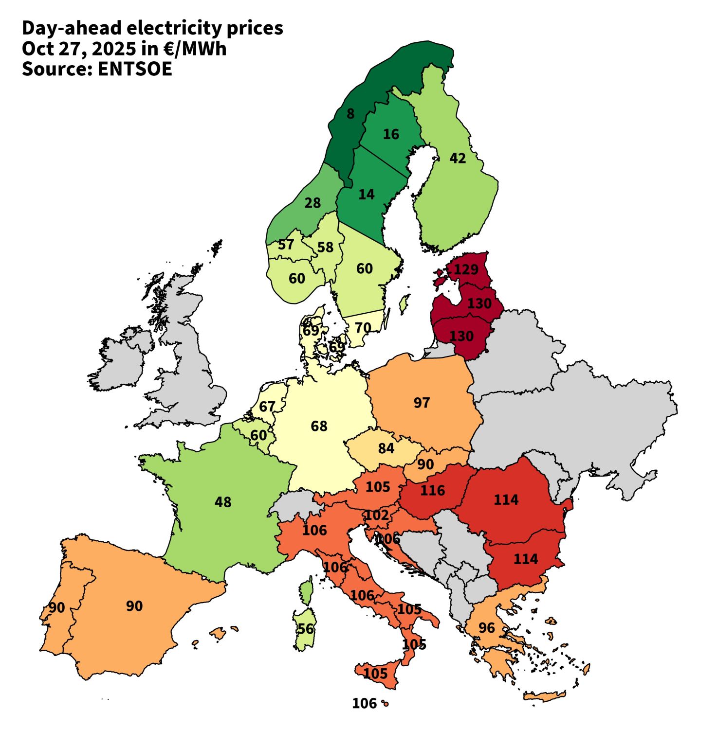 Τα παιχνίδια με τις μειωμένες ροές ηλεκτρισμού από την Κεντρική στη ΝΑ Ευρώπη που φουσκώνουν τις τιμές συνεχίζονται και οι αποκλίσεις τιμών από χώρα σε χώρα, που αναπόφευκτα επηρεάζουν και την Ελλάδα, επιμένουν, με ό,τι κινδύνους συνεπάγεται αυτό ενόψει του χειμώνα.