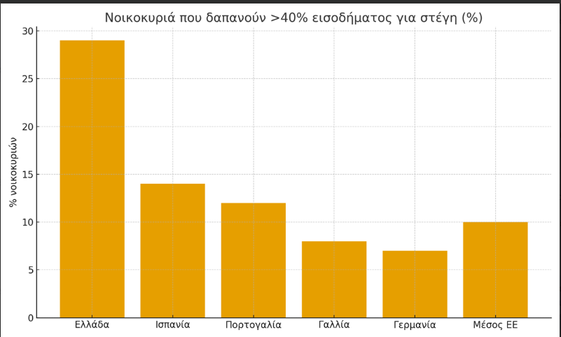 Πηγή: Eurostat 2024 – Νοικοκυριά που δαπανούν πάνω από 40% του εισοδήματος για στέγαση.