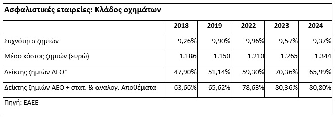 Σύμφωνα επίσης με τα στοιχεία της Ένωσης Ασφαλιστικών Εταιρειών Ελλάδος, το 2024: