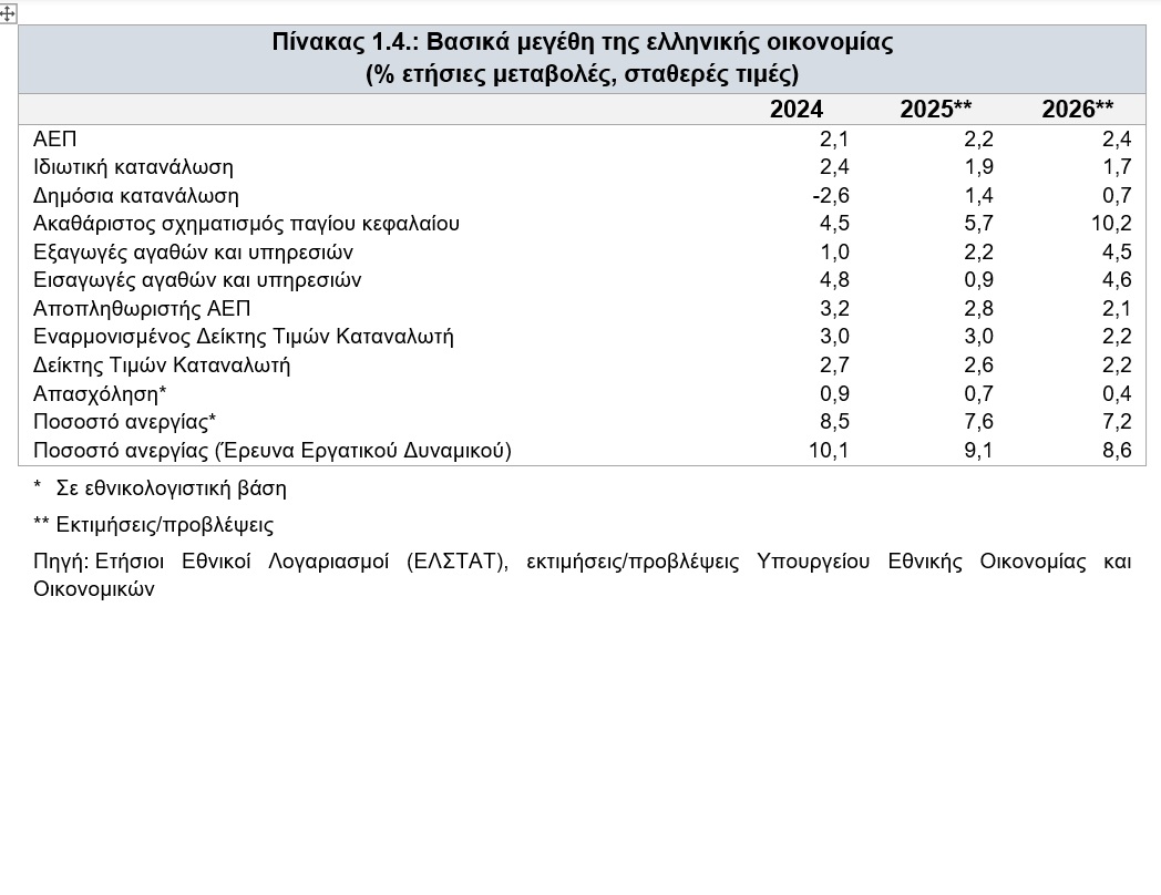 Οι ανθεκτικοί ρυθμοί μεγέθυνσης των τελευταίων ετών, σε συνδυασμό με την πρόοδο των διαρθρωτικών μεταρρυθμίσεων και την ενισχυμένη απορρόφηση των ευρωπαϊκών πόρων, αναμένεται να μεταφέρουν τη θετική επίδρασή τους στο έτος 2026, διαμορφώνοντας ένα ευνοϊκό πλαίσιο για την περαιτέρω βιώσιμη ανάπτυξη της ελληνικής οικονομίας, επισημαίνεται στην Εισηγητική Εκθεση του προϋπολογισμού που κατατέθηκε στη Βουλή.